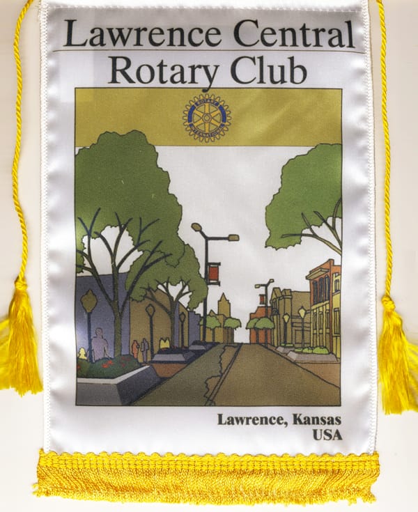 By 1959, exchanging banners had become so popular that the RI Board of Directors was concerned the practice would be a financial burden on clubs. It urged Rotarians to “exercise discretion, moderation, and measured judgment in making provision for such exchanges.” The approximately 20,000 banners in the Rotary History and Archives collection reflect the clubs’ hometown pride and their connection with the international organization. In addition to incorporating the Rotary emblem, banners often include symbols or imagery of a club’s town, region, or country. Others represent local craftsmanship or cultural traditions by displaying leatherwork, weaving, embroidery, or hand-painted designs. Below is a gallery of Banners that have been exchanged with Lawrence Central. As we get more we will add them!