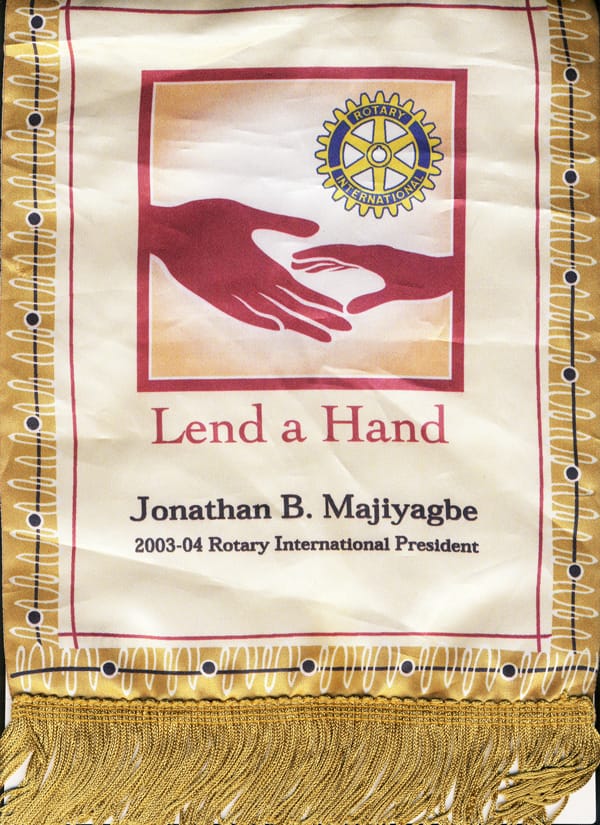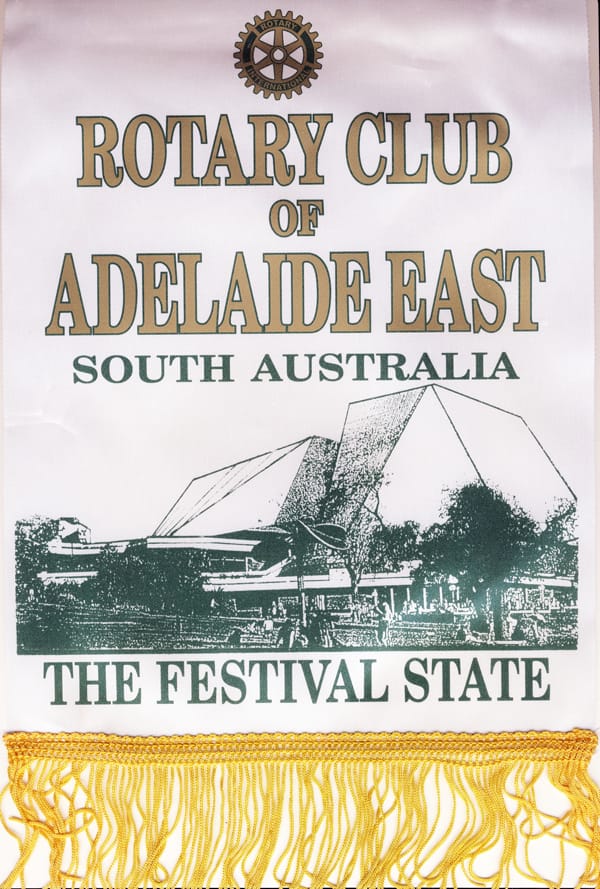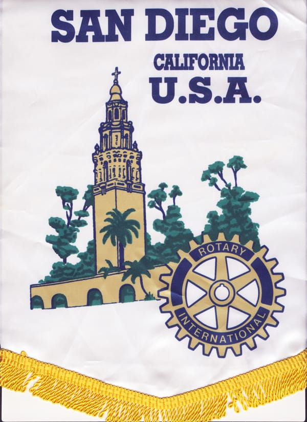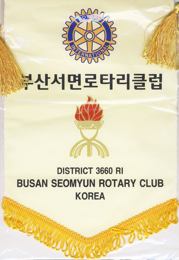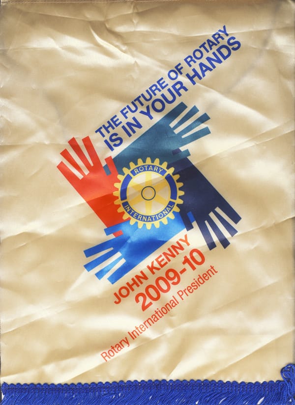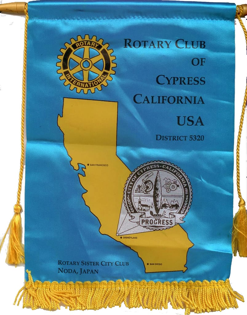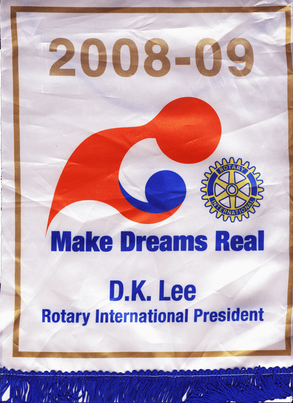 One of the more colorful traditions of Rotary is the exchange of club banners. Rotarians traveling to distant locations often take banners to exchange at make-up meetings as a token of friendship. Many clubs use the decorative banners they have received for attractive displays at club meetings and district events.